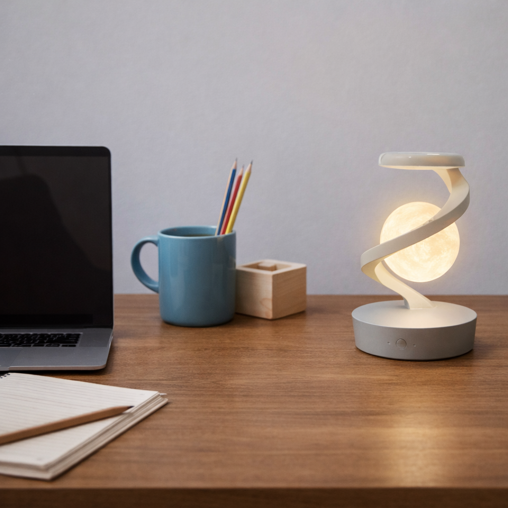 La Luna Flotante™ combina diseño artístico y tecnología innovadora en una espectacular lámpara de luna levitante 3D, capaz de flotar y girar suavemente en el aire, creando un ambiente mágico y acogedor en cualquier espacio.